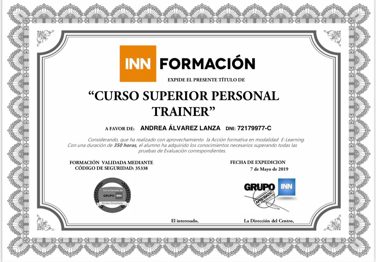 Soy un profesional registrado que cumple con el código ético de profesionales del ejercicio físico, en mi perfil podrás ver gran parte de mi historial profesional, mis titulaciones, mis especialidades y mis certificados. Estoy comprometida con la industria y por ello agradezco que te fijes en mi perfil, puedes contar conmigo tanto si eres un cliente que requiere de mis servicios como entrenador como si estas interesado en que colabore en tu gimnasio o estudio. No te arriesgues y contrata solo a profesionales registrados!!! Entrenadora personal. Actividades Dirigidas Especializada en Pilates Mat y Estudio. Rehabilitación de lesiones.