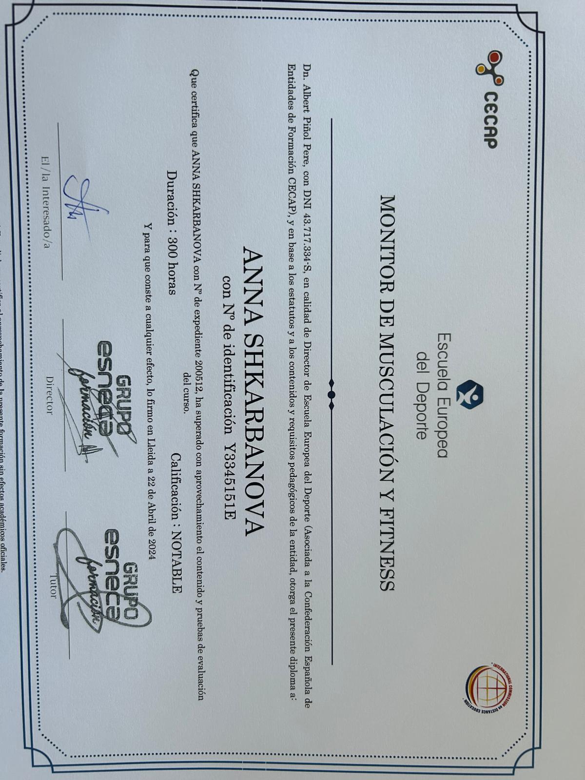 Instructor de Culturismo y Fitness